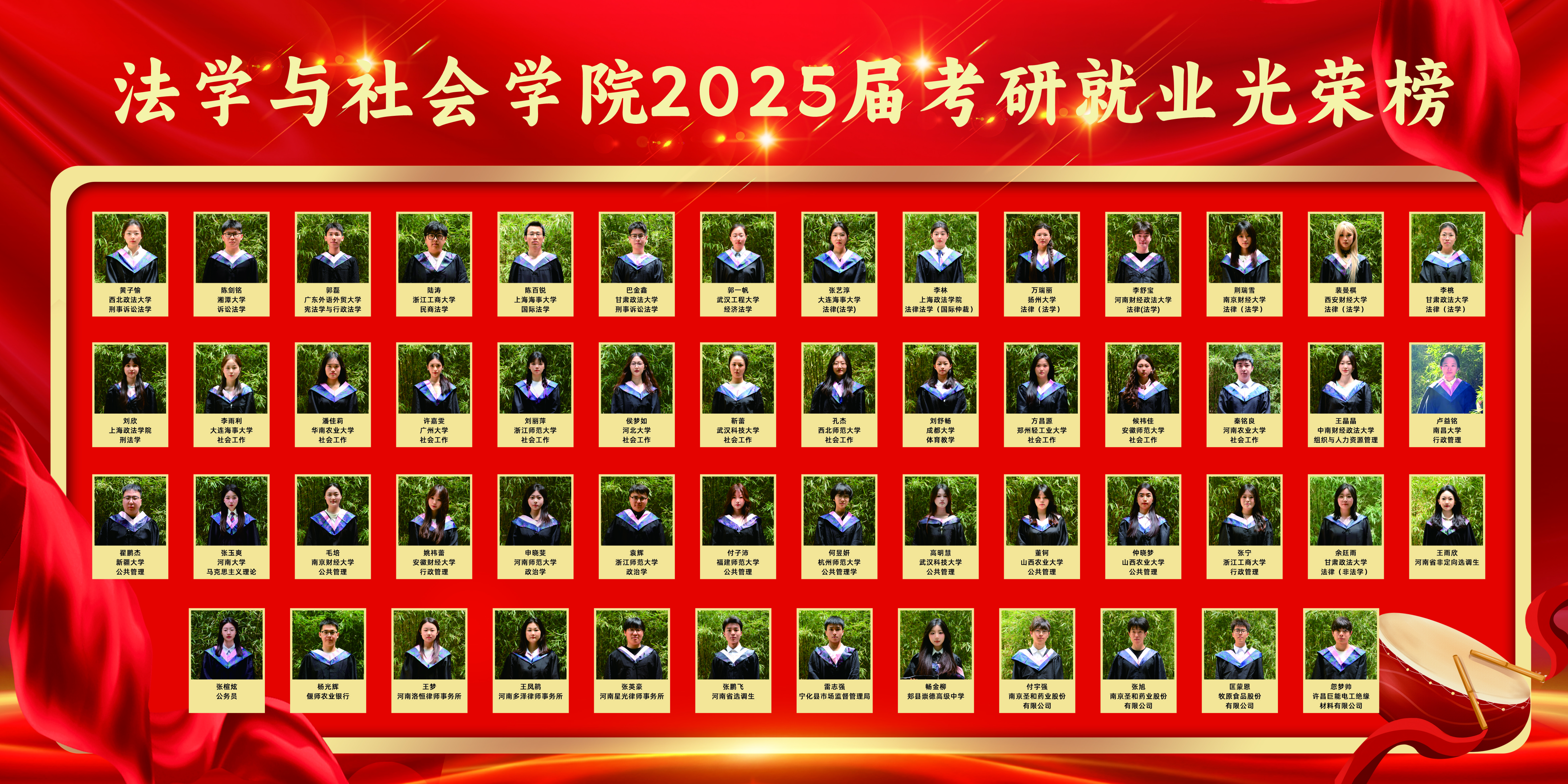 天道酬勤,佳绩频传!随着2025年全国硕士研究生录取及选调生、公务员招录工作陆续收官,法学与社会学院2025届149名本科毕业生中,41人成功考取硕士研究生,其中不乏西北政法大学、中南财经政法大学、南昌大学等重点高校;5名学生考取选调生或公务员。2025年实现考研就业“双丰收”,人才培养质量再创新高。