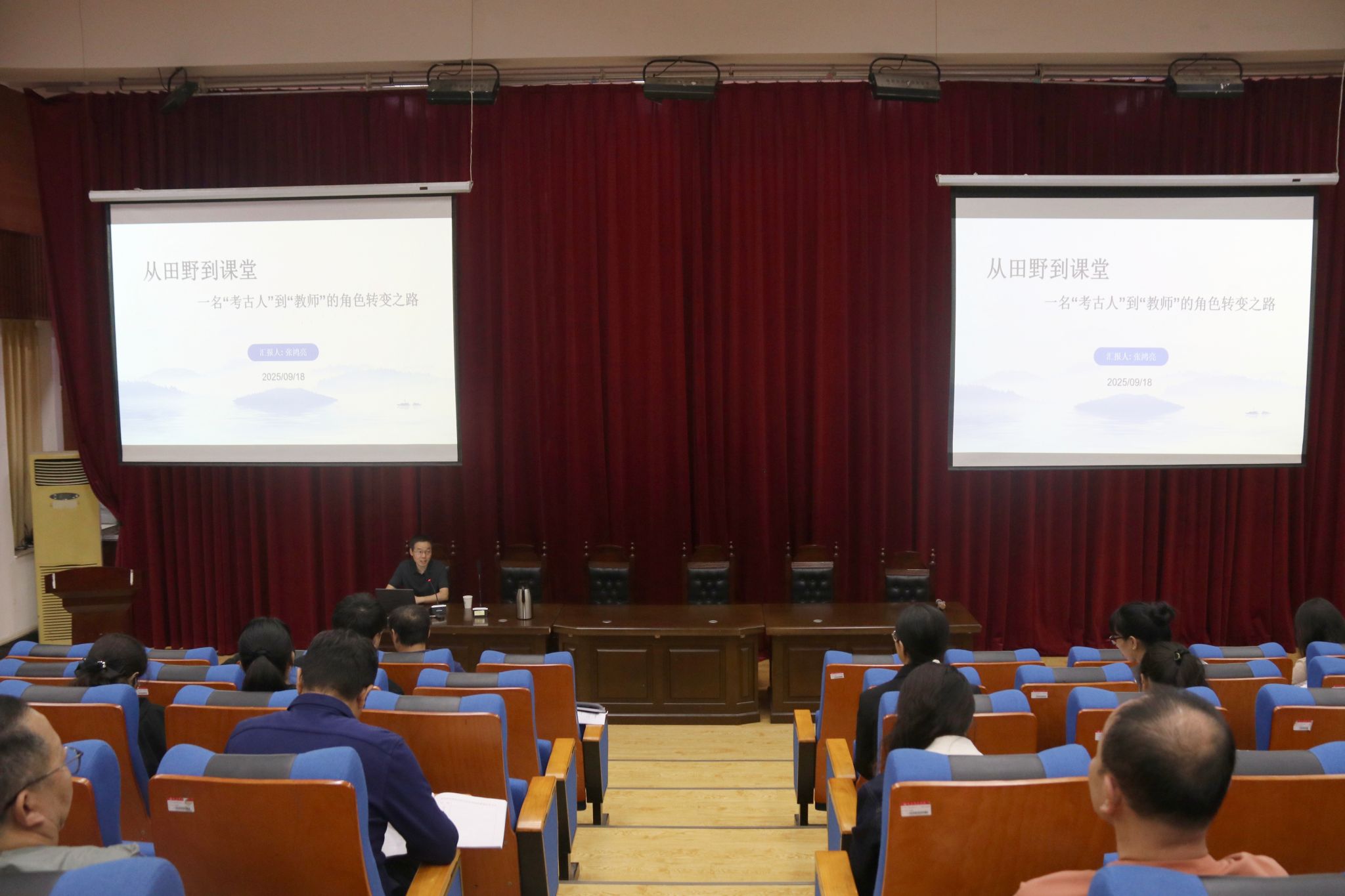 会上,张鸿亮结合自身工作经历,以“从田野到课堂——一名‘考古人’到‘教师’的转变之路”为主题展开分享。一是明确科研是教师“为人师”的安身立命之本,强调教师要始终坚守学术初心;二是提出教育实践要坚持以学生为中心,着力培养学生的专业自信心与认同感,充分兼顾学生未来发展需求;三是针对科研与教学平衡的现实挑战,分享时间、精力分配的方法,为在场教师提供了切实可行的应对思路。