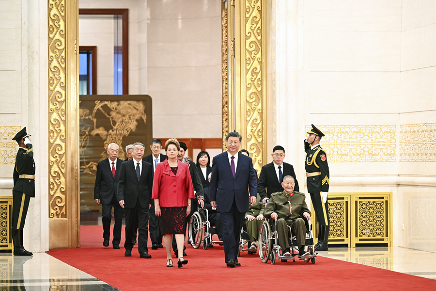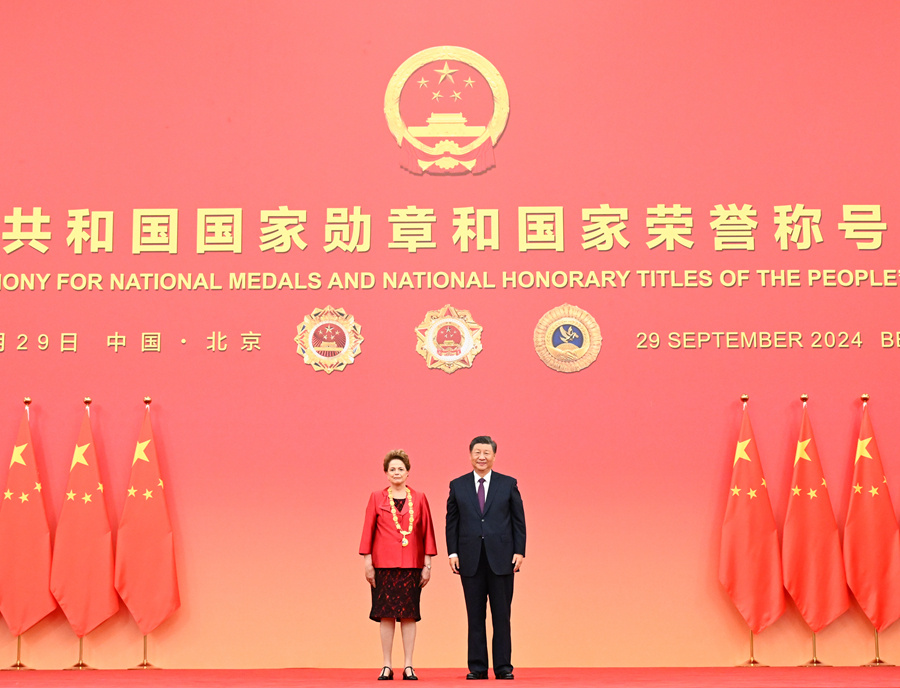 习近平指出,75年来,世界上有很多与中国人民志同道合、风雨同舟的老朋友、好朋友,今天被授予“友谊勋章”的迪尔玛·罗塞芙女士就是其中的杰出代表。中国人民永远不会忘记那些为中国发展、增进中国人民同各国人民友谊作出突出贡献的国际友人。中国人民愿携手世界各国人民,维护世界和平,促进共同发展,推动构建人类命运共同体,开创人类更加美好的未来。