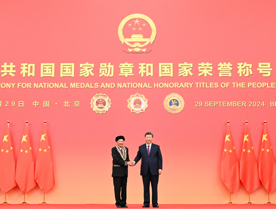 习近平向国家勋章和国家荣誉称号获得者颁授勋章奖章并发表重要讲话