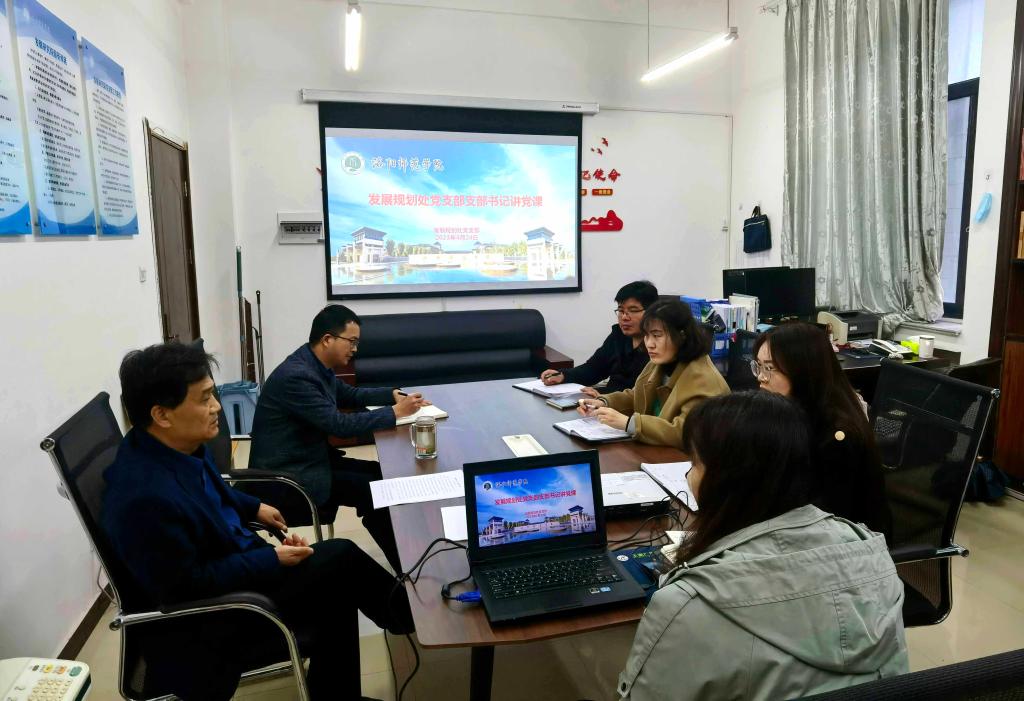 为深入开展学习贯彻习近平新时代中国特色社会主义思想主题教育,扎实推动主题教育走深走实,4月24日上午,发展规划处党支部书记郭辉以《学习贯彻习近平新时代中国特色社会主义思想,为推动学校高质量发展贡献智慧和力量》为题,为发展规划处全体干部职工上了一堂生动的专题党课,和大家分享了参加学校学习贯彻习近平新时代中国特色社会主义思想主题教育读书班的心得体会。
