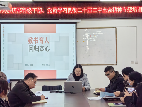 12月12日下午,在敦行楼411会议室,科级干部、党员学习贯彻二十届三中全会精神培训班如期开展。