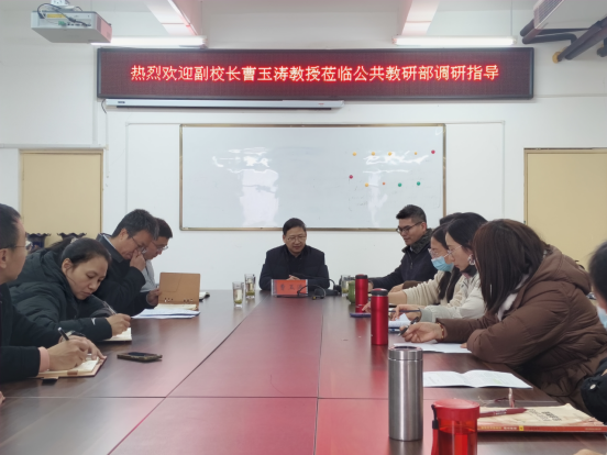 曹玉涛副校长认真听取了汇报,对公共教研部新学期开学的各项准备工作给予了充分肯定。他指出,公共教研部作为学校教学工作的重要组成部分,承担着全校公共课程的教学任务,责任重大。新学期是教育教学工作的关键阶段,必须切实增强责任感和使命感,确保教学工作平稳有序开展。他随后传达了省教育厅和校党委对安全工作的指示和要求,重点强调公共教研部要在政治安全、消防安全、心理健康安全等方面做到党政协同,扛牢责任,做到立足于“防”,加强源头自查,立足于“管”,加强习惯养成,立足于“常”,加强制度建设,从细微之处下大力气消除隐患,为师生营造良好的教学环境和学习氛围,为学校的发展做出更大的贡献。