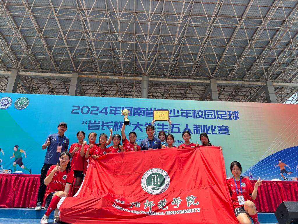 5月22日上午,2024年河南省青少年校园足球”省长杯”暨河南省传统特色学校比赛(大学组五人制)落下帷幕。我校“逐梦女足”(甲组足球队)在决赛中以3:0战胜华北水利水电大学,荣获本科女子甲组冠军。