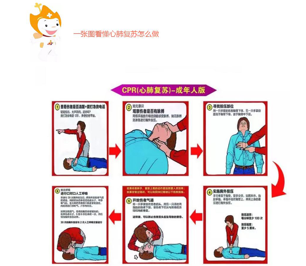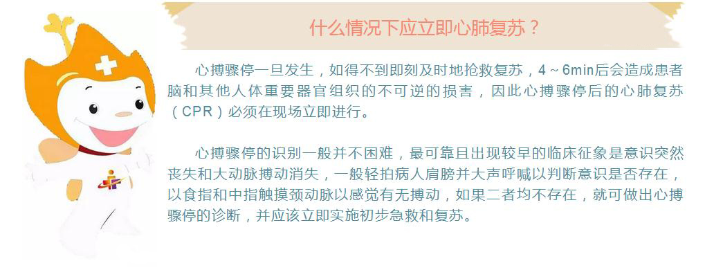 据卫生部统计,我国每年有54万人因心跳骤停而死,并且呈逐年递增趋势。在心脏停止4分钟内,如果施予正确的心肺复苏,有50%的患者可以成功复苏,随时间增加,复苏概率相应降低,直到10分后基本无希望。如果我们的急救普及率也像国外那么高,只要患者在公共场合发病,也有一半的人可以从死神手里逃脱出来。