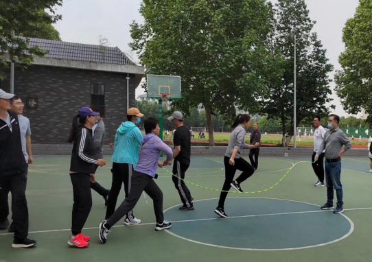 2023年5月11日下午6:00,为了丰富教职工的业余文化生活,弘扬校园体育文化,体现教职工朝气蓬勃、积极向上的精神风貌和增进教师彼此之间的交流与合作,公共教研部分工会在学校桃园操场篮球场开展教职工跳绳比赛。本次比赛主要是进行三项竞技,包括个人计数30秒单摇跳、一带一双人30秒单摇跳、2分钟10人长绳8字跳。