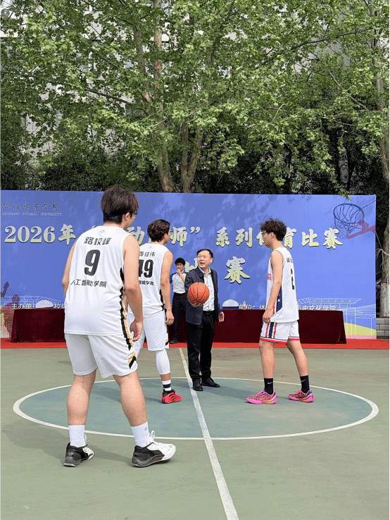 运动员代表与裁判员代表先后庄严宣誓,恪守体育道德、公平公正竞赛。学校体育运动委员会副主任、公共体育教研部主任赵红波宣布 2026 年 “运动洛师” 系列体育比赛正式开幕,并为篮球揭幕战开球,赛场运动激情瞬间点燃。