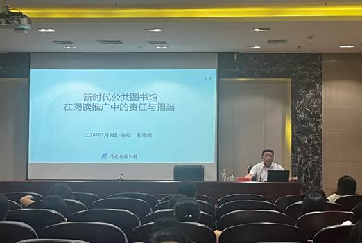 2024年7月3日至5日,由洛阳市图书馆主办、洛阳师范学院国家文化和旅游研究基地、河南省公共文化研究中心承办的“洛阳市阅读推广高质量发展暨洛阳市基层骨干阅读推广人培训”在洛阳师范学院成功举办,洛阳市各级公共图书馆50余名工作人员参加了此次培训。