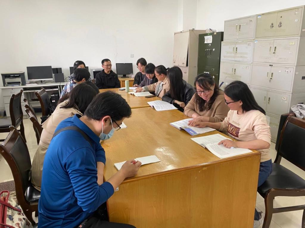 第三教研室全体成员围绕《新起点大学英语综合教程2》第五单元的Text A 和Text B展开讨论,就课文导入方法、教学重难点、思政元素的融入等方面进行研讨,随后对于实际授课中遇到的问题和困惑积极进行交流并寻求有效的解决方法。