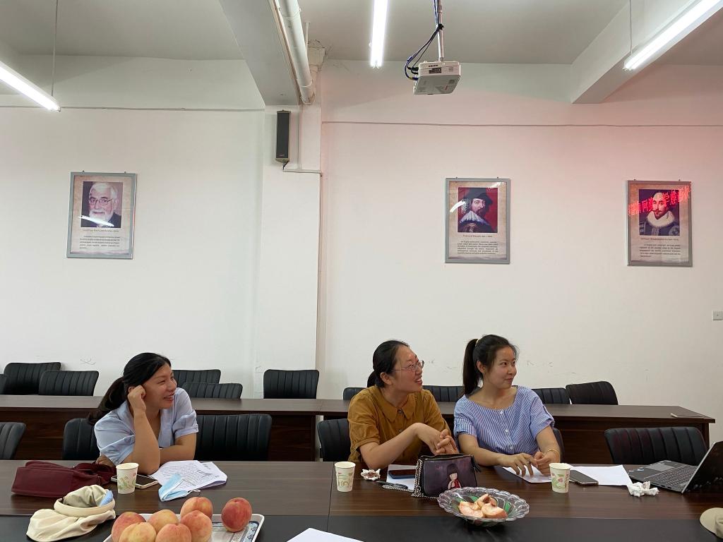 由河南省教育厅举办的第十三届全国高校外语教学大赛跨文化组比赛在2022年暑期展开。部门王丽娜老师和李悦老师参赛团队成功入围省赛。为切实提高选手参赛能力,公外部于8月22日在敦行楼411会议室为本次参赛的三名选手进行了赛前指导。音乐学院常毅敏  老师与公外部张艳红主任、郎红琴教授、王莉老师、周湉老师共同为三位选手进行了指导。