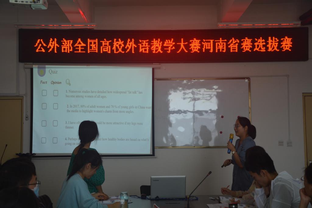 本次教学比赛为老师们提供了展示教学风采的平台,也为老师们相互交流提供了宝贵的机会。本次比赛的一等奖获得者将代表部门参加河南省外语教学大赛,祝他们取得好成绩。