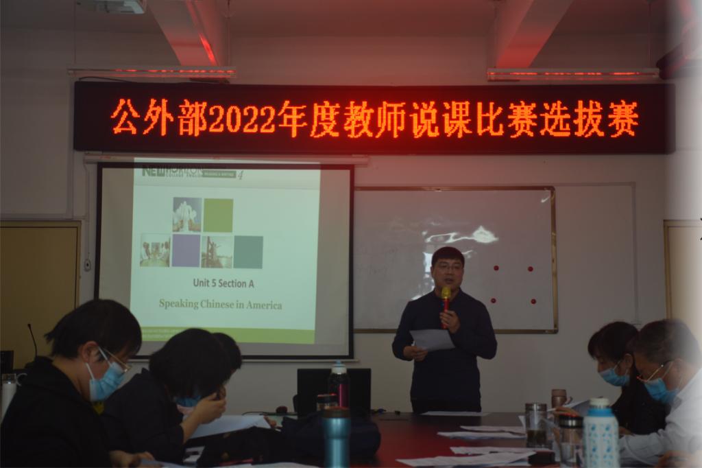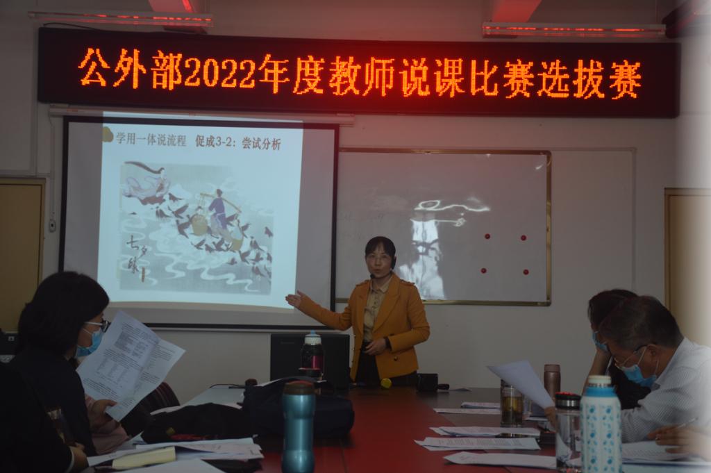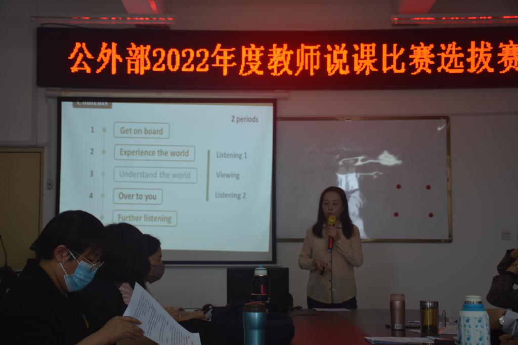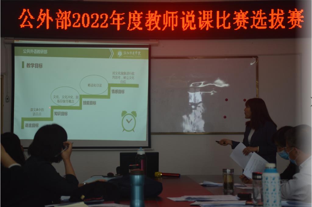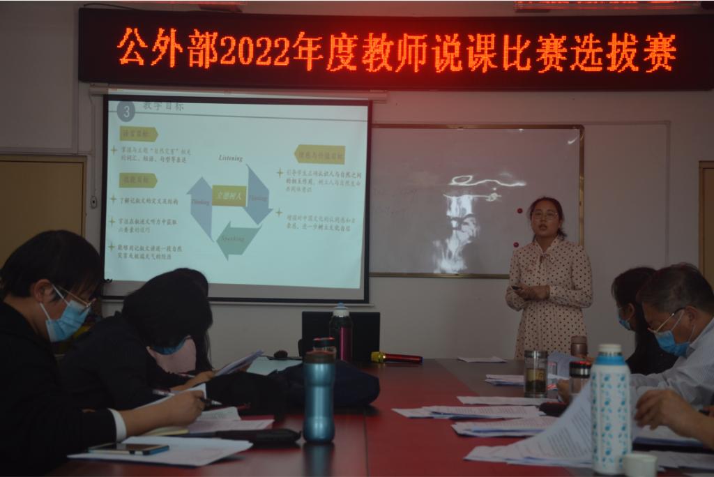 4月21日下午,公外部在敦行楼411会议室举行了2022年度教师说课比赛选拔赛暨首届洛阳师范学院说课大赛初赛。校督导组组长李建功老师,公外部王莹主任、张艳红副主任及全体教师参加了本次教学观摩活动。比赛邀请李建功、王莹、郎红琴、徐翠萍、王芳、岳俊琳、张丽丽担任比赛评委。