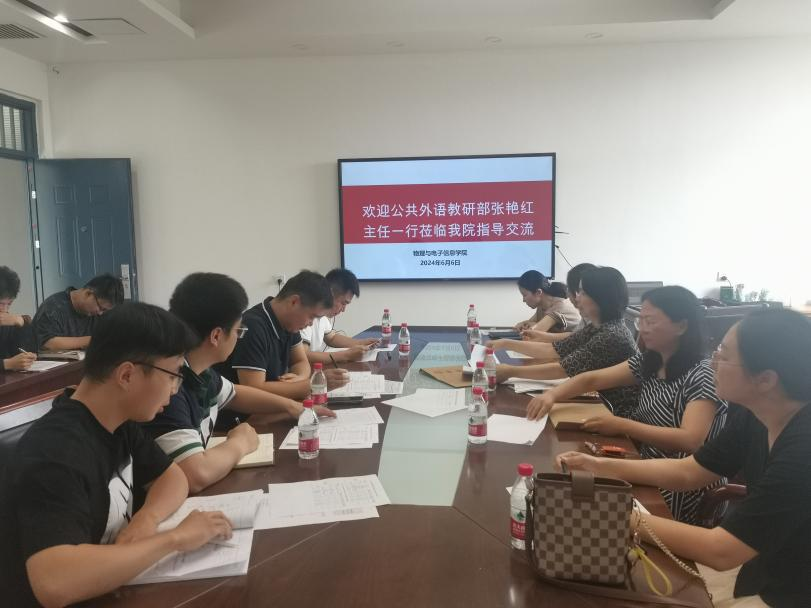 为了响应学校的“院办校”改革,促进大学英语课程与专业能力培养的有效结合,近日,公外部先后深入物理与电子信息学院、教育科学学院、信息技术学院开展大学英语教学调研活动。此次活动由公共教研部党委书记李广、公外部主任张艳红带队,副主任张丽丽、教研室主任、团队负责人及教学秘书等参与。