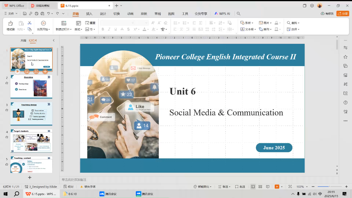 6月15日晚上,公共外语教研部特邀西安交通大学外国语学院钱希教授为即将参加河南省教学比赛的王碧娟、周湉两位教师进行赛前指导。本次指导交流会通过腾讯会议进行,30多位部门青年骨干教师全程参与观摩学习。