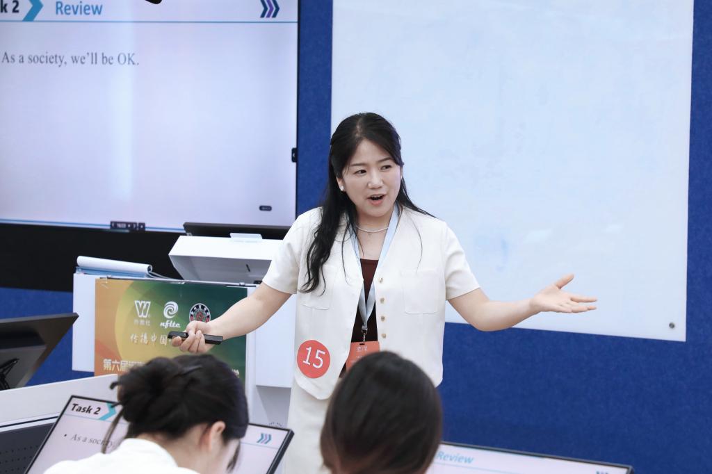 本届大赛汇聚全省高校教学精英,竞争激烈。大赛分为初赛和决赛两个阶段,初赛环节包括现场授课、教学设计展示,决赛环节包括指定材料限时说课、专家提问。王碧娟老师凭借创新教学设计与精湛教学技艺,在综合组比赛中以扎实的专业素养、新颖的课堂互动,赢得评委高度认可,一举摘得综合组一等奖。周湉老师在视听说组比赛中,凭借对语言技能教学的深刻理解,精心创设真实语言情境,有效激发了学生的语言实践活力,最终荣获视听说组二等奖。