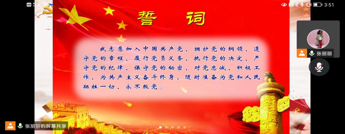首先,支部书记张丽丽作关于入党初心的感悟分享,她从家庭和工作两个方面谈论自己如何接受党的教育,如何一步步理解党员身份。紧接着,党员代表陈萌、陈刚、张方丽、任玲玲和郭培培等多名党员教师回忆自己的入党初心并结合自身教学工作表达了高校教师这份职业的使命感和责任感,大家表示未来要时刻提醒自己的党员身份,树立终身学习的理念,时刻保持党员的先进性。交流环节结束后,张丽丽同志代表党支部为大家送出党组织精心准备的礼物---电子政治生日贺卡,大家深受感动。最后她带领大家重温入党誓词,勉励全体党员不忘入党初心,坚定理想信念,用实际行动来践行党的宗旨,履行高校教师的职责,为党和国家培养有理想、有本领、有担当的时代新人。