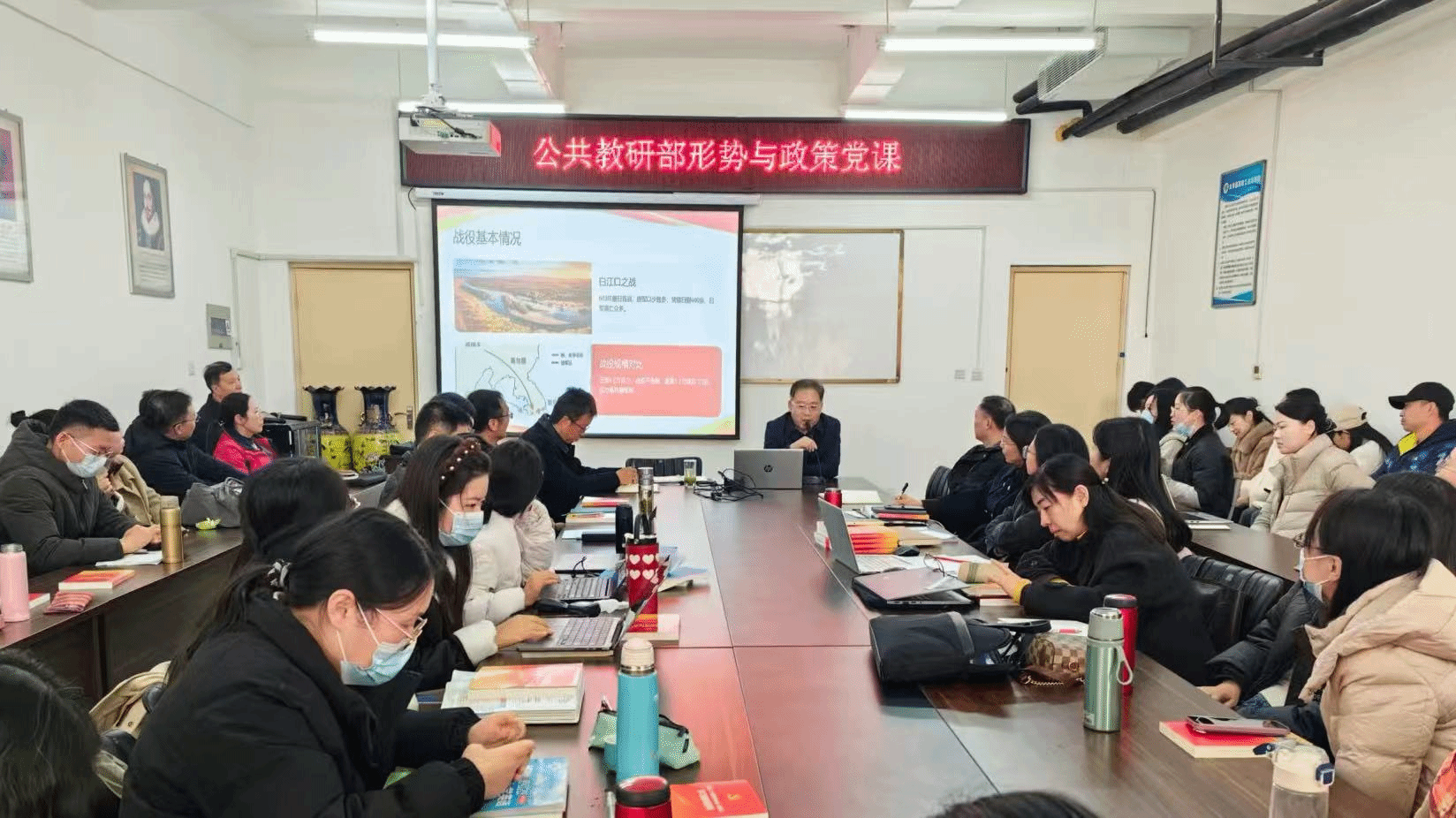 12月11日下午,公共教研部党委书记赵明在敦行楼411会议室,以“中日关系的‘结’与‘解’”为题,为全体教职工讲授形势与政策专题党课。