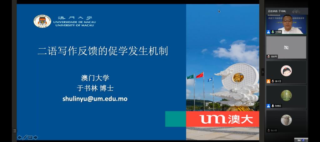 11月13日下午,受公共外语教研部邀请,澳门大学于书林教授在腾讯会议为公共外语教研部全体教师带来了一场题为“二语写作反馈的促学发生机制”的学术讲座,公外部全体教师参加了此次讲座。