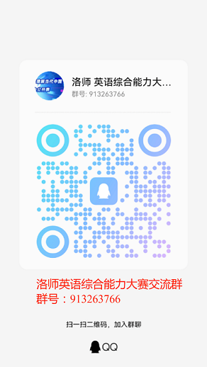 本届大赛依托“外研社·国才杯”“理解当代中国”英语综合能力公开赛2024年度我校专属平台报名。请同学们识别下方我校专属报名二维码,填写报名信息,缴费成功后,请务必加入赛事交流QQ群(洛师英语综合能力大赛交流群——群号:913263766),并密切关注QQ群消息,了解赛前赛事安排(如,考场信息、考试安排等)及后续相关事宜(纸质证书领取等)。