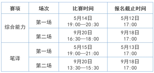 注:1.请同学们报名时确认好自己所选赛事无误(英语综合能力/笔译)及所选场次(第一场)。