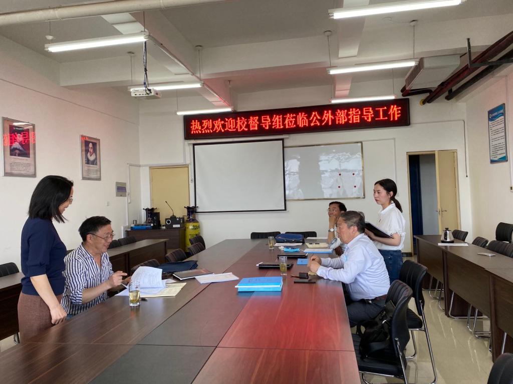 5月5日下午三点四十分学校督导组评估专家李建功、龚熙文、王建设三位老师莅临公外部,对2021-2022学年第二学期期中教学质量工作进行评估检查。部门领导王莹主任和张艳红副主任,以及教学秘书和教务员参与此次评估工作。