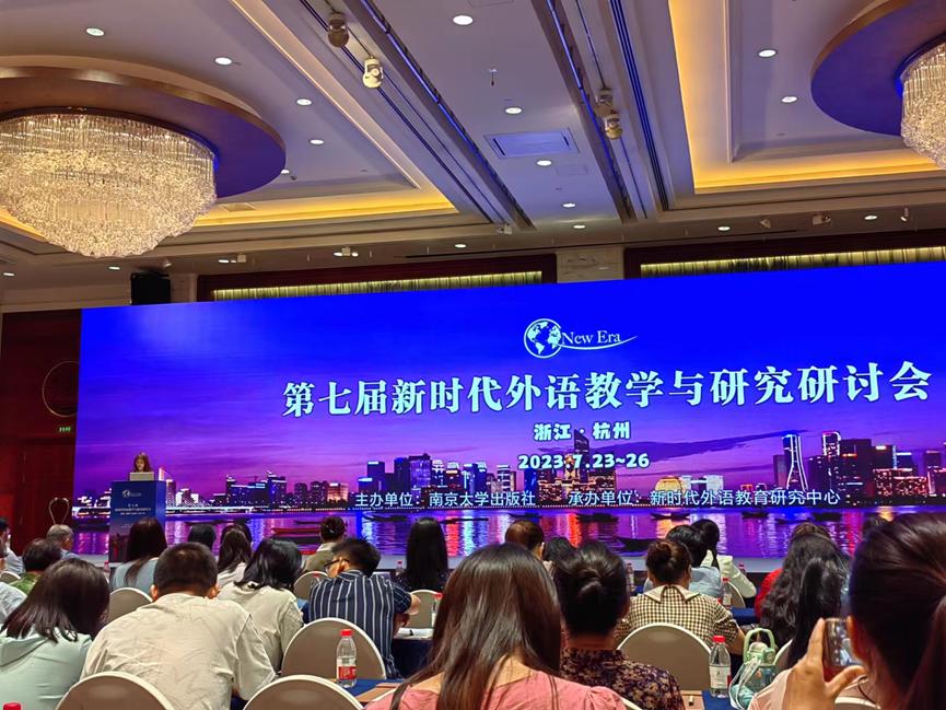为深入贯彻习近平总书记提出的“三全” 育人方针,落实教育部推进习近平新时代中国特色社会主义思想“进教材,进课堂,进头脑”的要求,帮助教师使用好新时代大学进阶英语教材资源,强化教师课程思政理念,公共外语教研部选派徐翠萍、张丽丽、沈文娟、张飞等4位教师参加2023年7月23日至26日在杭州召开的第七届新时代外语教学与研究研讨会。
