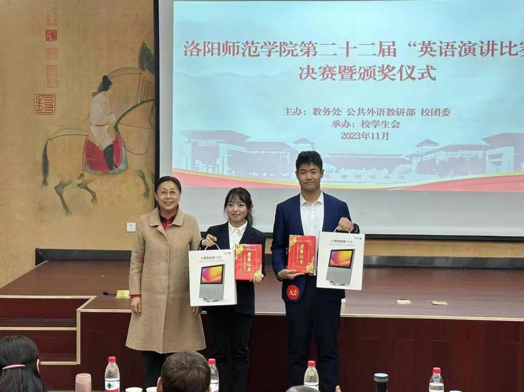 比赛结束后,外教Craig和Alexander分别对本次比赛进行了点评。Craig在点评时与学生进行了精彩互动,他用风趣幽默的语言教同学们如何用英语俚语表达赞扬。两位外教高度肯定了选手们的精彩表现,同时也为参赛选手提出了改进的建议。最后在欢快的音乐声中举行了颁奖仪式,评委老师为选手们颁发了获奖证书和奖品。