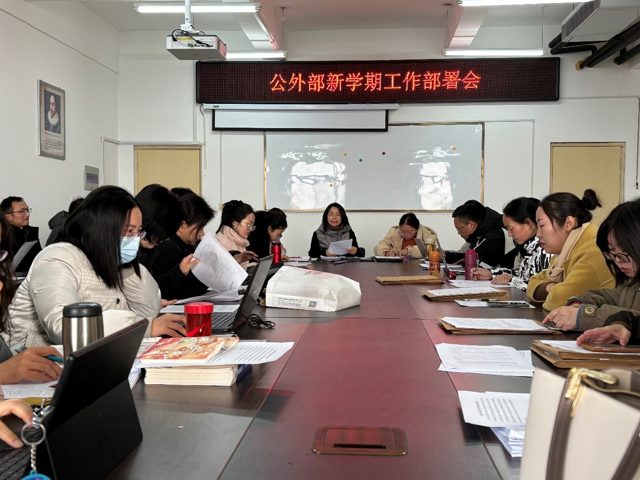 为保证新学期各项工作的顺利开展,2月27日上午,公共外语教学部在敦行楼411会议室召开了2023-2024学年第二学期工作部署会。会议由张艳红主任主持,公外部全体教师(含外聘教师)参会。