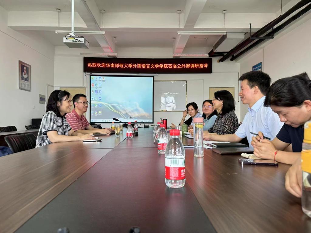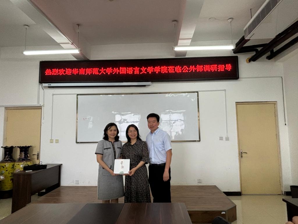 2024年5月23日,华南师范大学黄丽燕教授带领团队莅临公外部进行考察交流。公外部主任张艳红、副主任张丽丽、外国语学院副院长郝周绍以及公外部教研室主任等参加了此次交流活动。