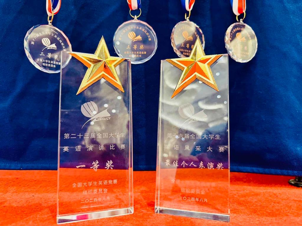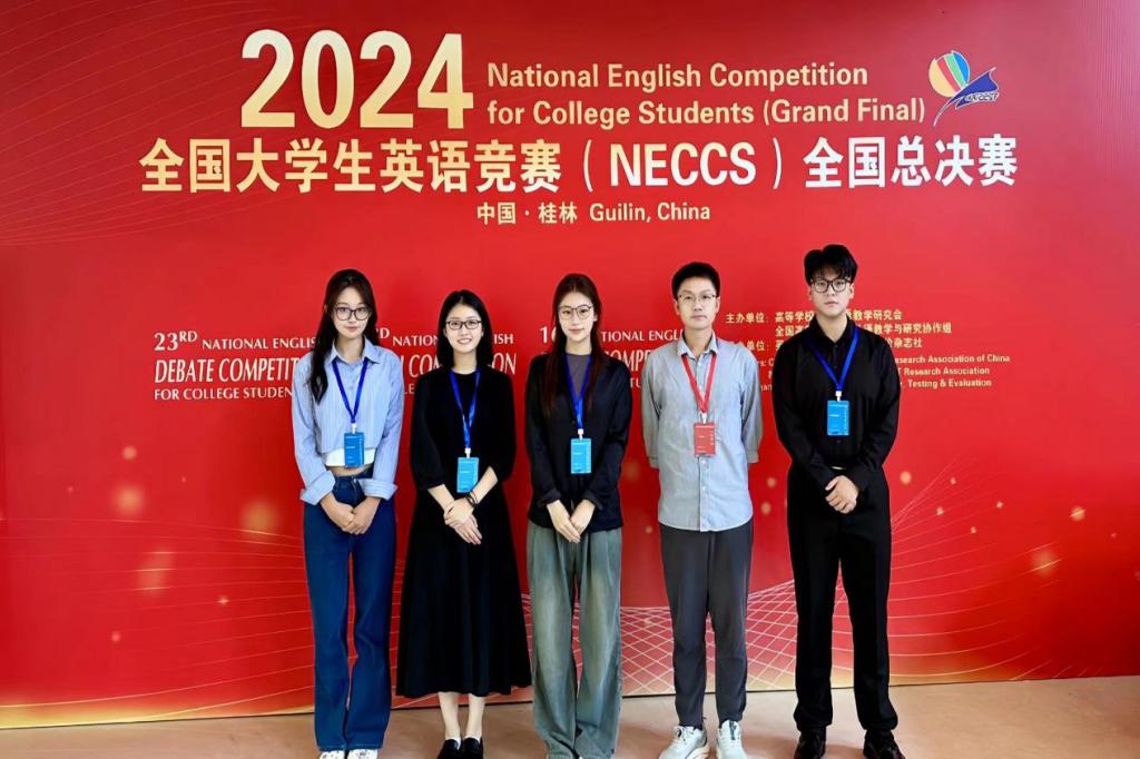 近日,2024年全国大学生英语竞赛(National English Competition for College Students,简称NECCS)全国总决赛在广西桂林落下帷幕,我校首次选派并全额资助学生参加全国大学生英语比赛全国总决赛并取得了历史性突破:斩获全国大学生英语演讲比赛一等奖1项、三等奖2项;斩获全国大学生英语风采大赛最佳个人表演奖1项、二等奖1项、三等奖1项,获奖数量和等级位居全省第一。