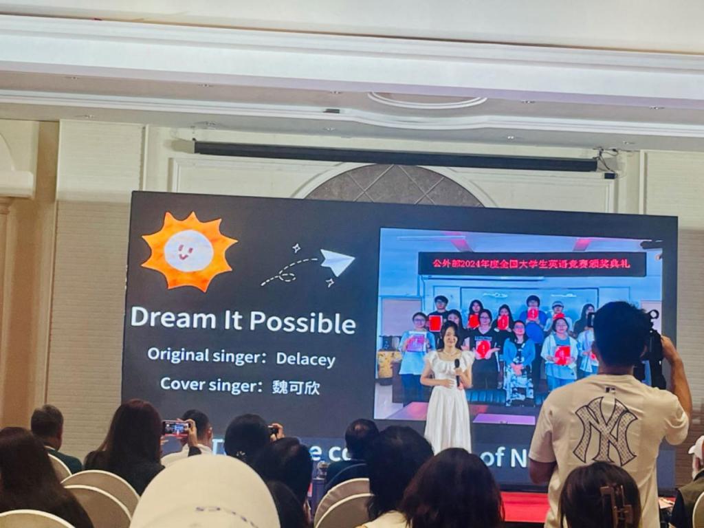 第十六届全国大学生英语风采大赛初赛和总决赛分别在8月2日和8月4日举行,魏可欣同学凭借《Dream it possible》英文歌曲意义深远的主题设计和精湛的现场演唱荣获最佳个人表演奖、大赛二等奖的好成绩;段晓寒同学凭借脱口秀《When Chinese Modesty meets Western Praise》荣获大赛三等奖;王文婕和殷正昊两位同学的风采展示荣获全国优秀奖。
