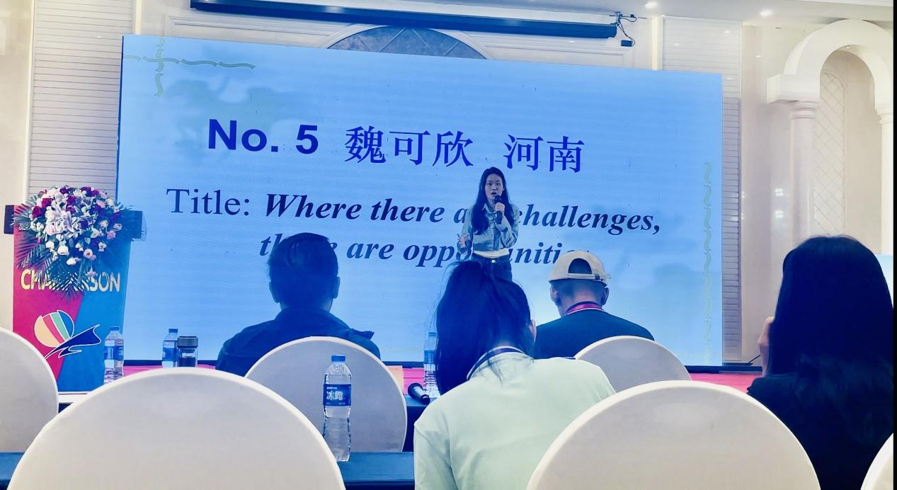 我校选手魏可欣在全国大学生英语演讲竞赛全国总决赛阶段的即兴演讲