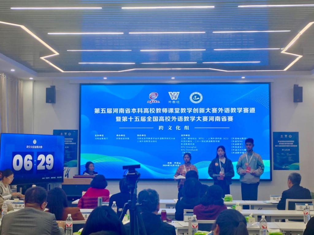 2024年10月19-20日,第十五届全国高校外语教学大赛河南省赛(跨文化组)在河南城建学院成功举行,来自全省45所高校的参赛选手参加了本次大赛。我校代表队在比赛中凭借出色的表现,荣获一等奖。