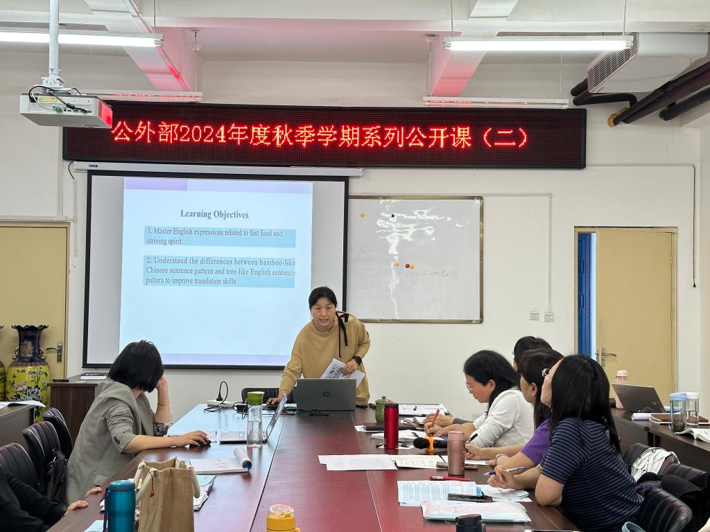 10月10日下午,公外部在敦行楼411会议室举行了2024年度秋季学期第二次公开课活动,张艳红主任和全体教师参加了此次活动。
