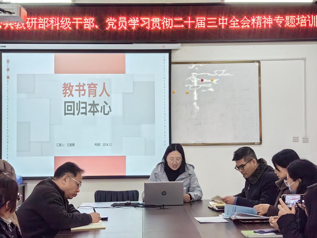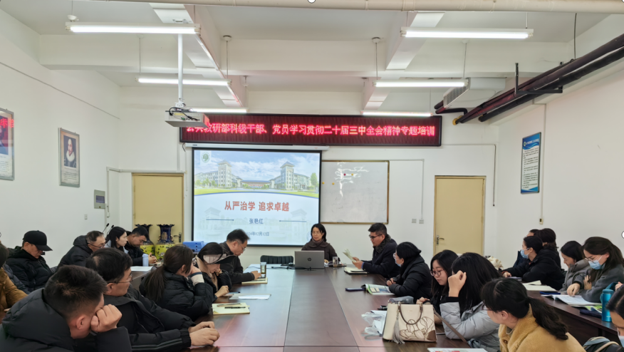 12月12日下午,在敦行楼411会议室,科级干部、党员学习贯彻党的二十届三中全会精神培训班如期开展。
