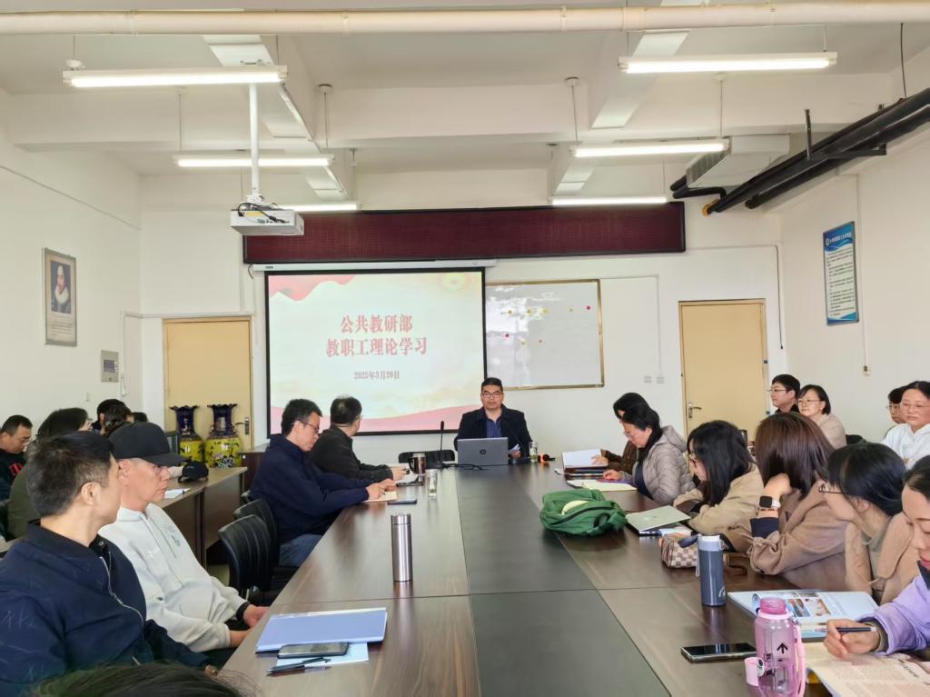 为深入落实党的教育方针,积极响应国家教育政策导向,3月20日下午,公共教研部在敦行楼411会议室成功举办了教职工理论宣讲活动。活动由公共教研部党委书记李广主持,公共体育教研部、公共外语教研部全体教职工参加。