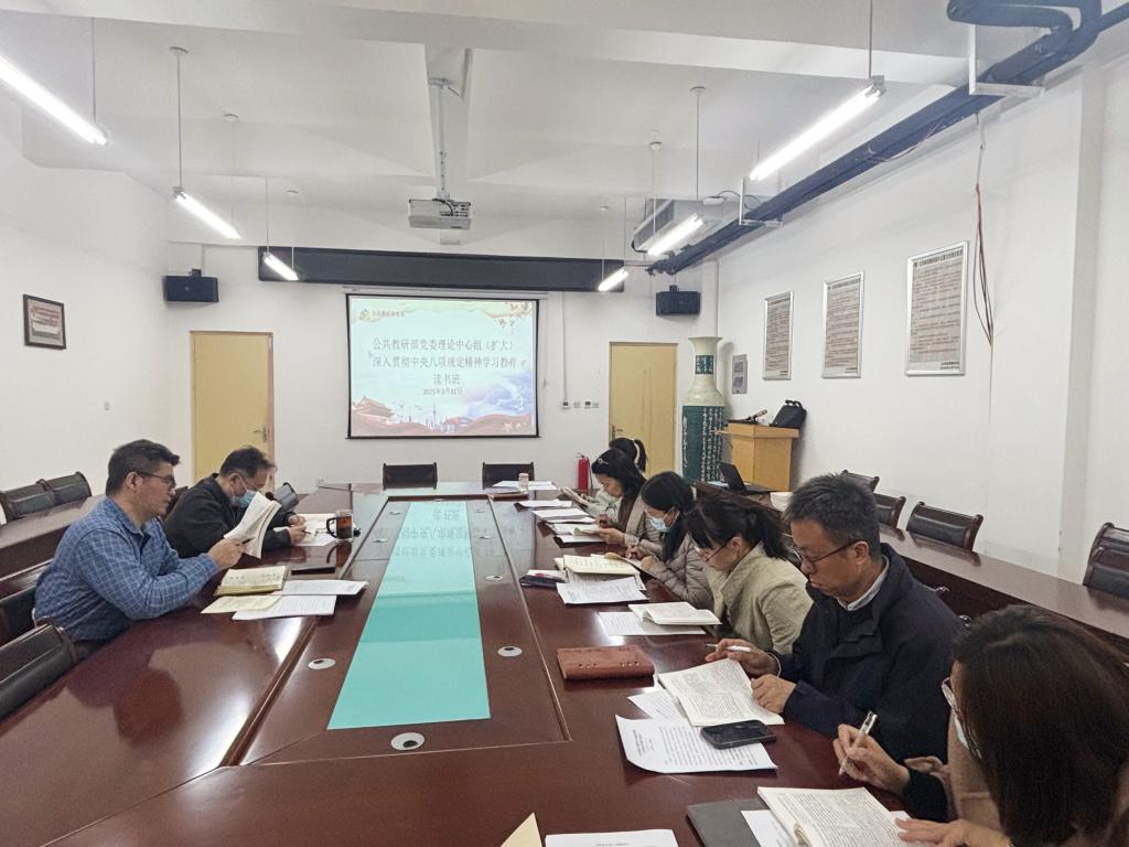 3月31日、4月3日,公共教研部党委以党委理论学习中心组(扩大)会议的形式,采取集体学习、个人自学和交流研讨相结合的方式,举办深入贯彻中央八项规定精神学习教育读书班。全体党委委员、各支部书记参加读书班。