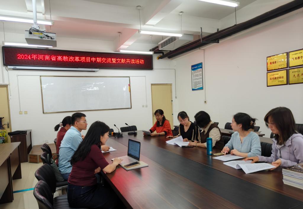 为扎实推进省级高等教育教学改革研究项目建设,2025年4月10日下午,公外部大学英语课程思政教学团队在敦行楼411会议室组织召开“‘大思政’格局下大学英语课程思政教学团队建设研究与实践”项目中期交流推进会。活动由项目主持人郎红琴教授统筹策划,团队全体成员通过“成果汇报+文献共读”的创新形式,系统梳理建设成效,共谋创新发展路径。