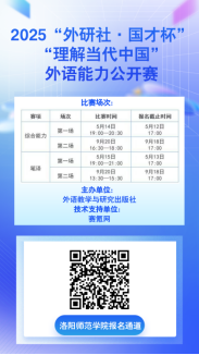 为激发我校学生的英语学习兴趣,夯实语言基础,切实提高语言综合运用能力、跨文化能力、思辨能力、创新能力等,助力培养能够用外语讲好中国故事的高水平国际化人才,同时为“外研社·国才杯”“理解当代中国”全国大学生外语能力公开赛参赛选手提供实战模拟机会,选拔校内优秀选手,我校特举办2025年度外语能力公开赛。比赛有关事项通知如下: