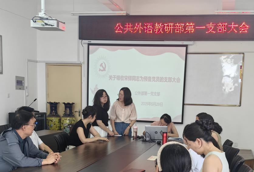 5月29日,公外部第一党支部在公外部会议室隆重召开支部大会,讨论接收宋铎同志为预备党员。