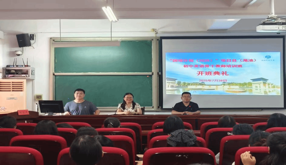 7月28日下午,2025年“国培计划”渑池县骨干教师培训班开班典礼在继续教育学院417教室顺利举行。公共外语教研部副主任张丽丽、培训工作负责人陈占岐、渑池县教体局副主任杨振以及全体参训学员共同参加。