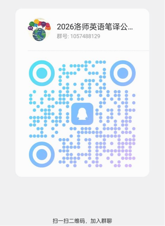 报名成功后,请务必加入赛事交流 QQ 群(2026 洛师英语综合能力大赛交流群——群号1097774329;2026 洛师英语笔译公开赛交流群——群号 1057488129),并密切关注 QQ 群消息,了解赛前赛事安排(考场信息、考试安排等)及后续相关事宜(纸质证书领取等)。