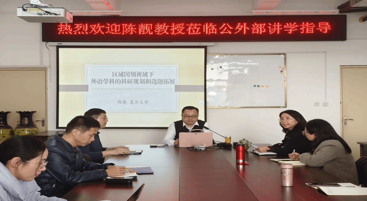 应公共外语教研部外语教育与测评研究中心邀请,2025年11月13日,复旦大学陈靓教授在敦行楼411会议室为公共外语教研部教师作了题为“区域国别视域下外语学科的科研规划与选题拓展”的专题讲座。讲座由张艳红主任主持。