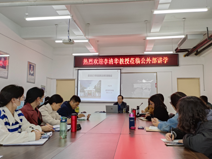 4月21日下午,应公共外语教研部、外语教育与测评研究中心邀请,南方医科大学李清华教授莅临公共外语教研部开展了题为“语言能力等级量表及其效度验证”的学术讲座,公外部全体教师参加了此次讲座。