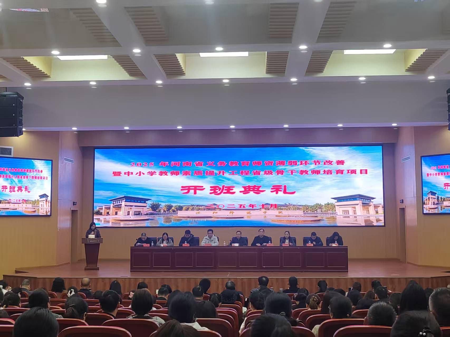 金秋送爽,学韵飘香。10月26日上午,由我校承办的2025年“义务教育师资薄弱环节改善暨中小学教师素质提升工程”省级骨干教师培育项目(初中英语)开班典礼,于逸夫楼G1-112会议室隆重启幕。洛阳师范学院党委副书记曹玉涛出席典礼并发表讲话,河南省中小学教师校长研修院执行院长冯虎成、公共外语教研部副主任张丽丽等相关部门负责人,与来自全省各地的312名骨干教师齐聚一堂,共同见证这一赋能基础教育高质量发展的重要时刻。