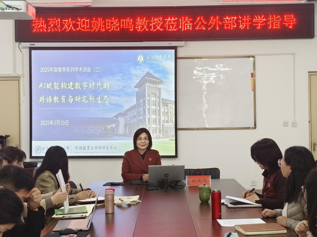 328日上午,应公共外语教研部、外语教育与测评研究中心的邀请,中原工学院外国语学院院长姚晓鸣教授莅临公外部开展题为“AI赋能:构建数字时代的外语教育与研究新生态”的讲座。次讲座由张艳红主任主持,全体教师参与。