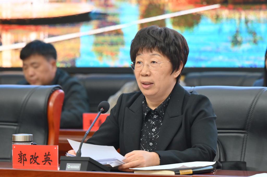 郭改英作总结讲话。她代表学校党委,对大会的成功召开表示热烈祝贺,向全体与会代表和辛勤工作在教学、科研、管理与服务一线的全体教职工表示衷心感谢。就推动学校高质量发展,她提出三点要求:一要在“如何看”上统一思想、凝聚共识,充分认清改革的重要性。要自觉站在拥护“两个确立”、做到“两个维护”的政治高度,认真研究上级关于薪酬制度改革和加强新工科建设的战略考量、政策逻辑、问题指向和具体要求,切实把思想和行动统一到党中央决策部署上来,高站位、高质量、高效率完成改革任务;二要在“干什么”上吃透精神、把握原则,全面推进学校高质量发展新征程。深刻领会此次绩效工资分配改革对推动学校内部管理体制和人事分配制度改革,激发办学活力和科研创新活力,增强发展内生动能的重要意义。深刻领会学校党委实施内部调整、弯道超车战略是落实高等教育“三个调整优化”,做优师范、做强文科、做大做特新工科的具体措施。三要在“怎么办”上凝聚力量、彰显担当,确保改革调整任务落地见效。要进一步强化“惟改革者进、惟创新者强、惟改革创新者胜”的理念,按照省委“四高四争先”目标要求,深化教育综合改革,全面加强内涵建设,充分彰显办学特色,统筹高质量发展和高水平安全,始终保持勇于开拓的闯劲、革故鼎新的胆魄,锚定目标、乘势而上、向新而行,以钉钉子精神推进学校各项改革取得新的更大成效,为学校高质量发展注入强劲动能,为谱写中国式现代化河南篇章作出新的更大贡献!