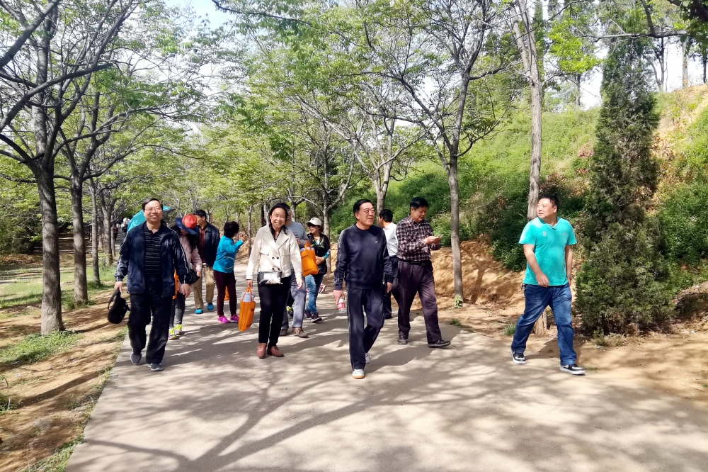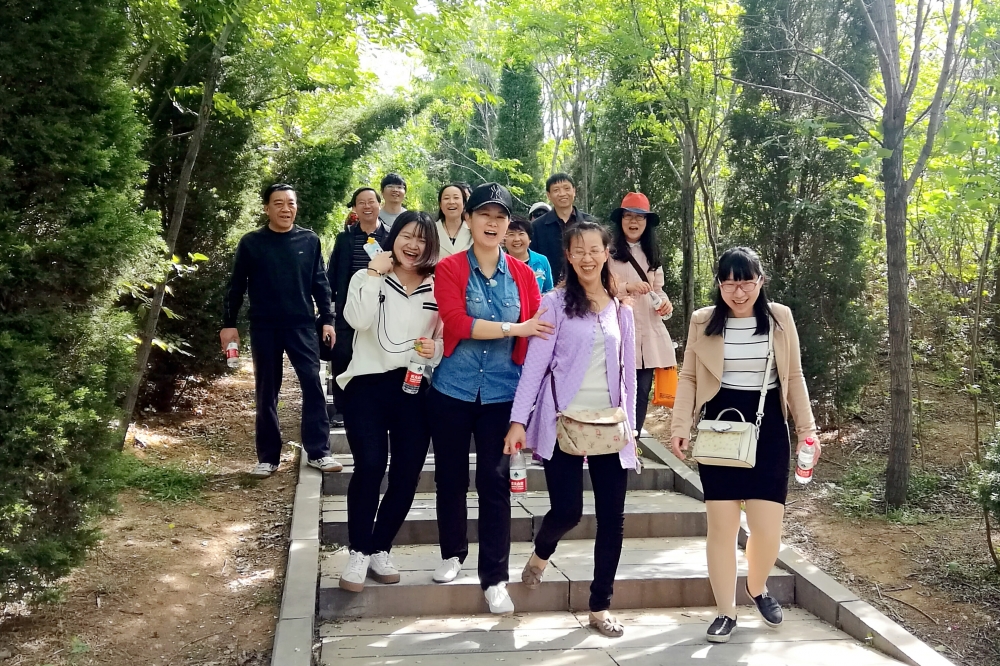 上午8时30分,教职工们有的从学校老校区出发,有的从鸿儒小区教工住宅小区出发,乘坐大巴去往目的地。周山森林公园到了,大家迫不及待地下车欣赏美景。虽然在市内,仍有许多老师是第一次来到这里。平时大家工作繁忙,今天有了释放压力、亲切交流的机会,大家三五成群结伴而行,谈笑风生。在柔和的春风吹拂下,沿着林荫路或石阶前行,呼吸着带槐花香的新鲜空气,感受着春天的信息。