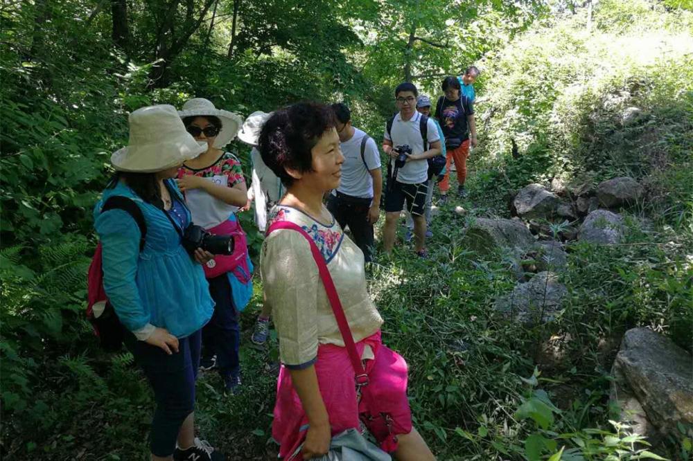 一带壮美山河,一路欢歌笑语。当大家到达杨树底村时,第一书记郭天顺带着村民已等候多时。为了使大家充分领略“望君山”景区的全貌,郭书记让一位老向导引路,大家亲自体验了一下正在开发的“望君山”景区线路。踏着老向导的脚印,追随老向导先前留下的“一路平安”红丝带路标,大家心随景移,沿着中兴路,步步攀升。初心石、紫竹林、山楂树之恋、瑶池、潜龙谷、藏龙洞、刘秀椅、光武顶、望君峰等景点,有特色、有寓意、有故事,真是美不胜收;崎岖的山路,潺潺的小溪,翠绿的竹林,茂密的杂草,远处的美景,使队员们流连忘返。中午的农家饭“野味”十足,可口,干净、实惠。沿途队员们不停地将看到的美景拍照发至朋友圈,吸引众人关注点赞,咨询旅行路线。