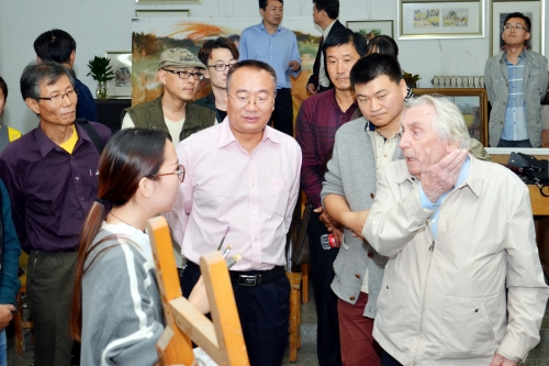 在梁留科校长的陪同下西多罗夫教授一行还参观了美术学院画室,观看学生作品,与师生对“怎样将思想表达在画布上”等话题进行了愉快的交流。